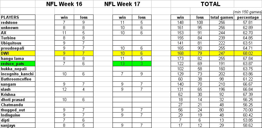 WILD CARD PLAYOFFS RESULTS....