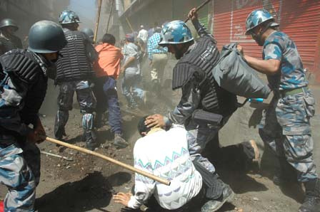 I can understand the pressure on Nepal Police epically on riot but one little kid and four police beating with that cruelty. That has no excuse. And Jai Nepal…looks like your brain is inside your ass. That boy is probably about 7-8 years old and don’t think that he knows anything about politics…You were not there to see if he was stoning to those police…Maybe he was just running for his life, who knows….If that picture is not heartbreaking than what is?