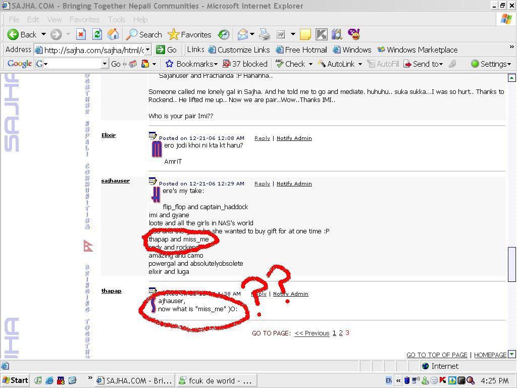 -http://sajha.com/sajha/html/openThread.cfm?forum=2&ThreadID=39638 यो धागोमा हाम्री मिस् को बारेमा के लेख्या हो त्यो"sajhauser"मोरीले ? रिस् उठ्यो मलाई त! गररररररर । । । ।