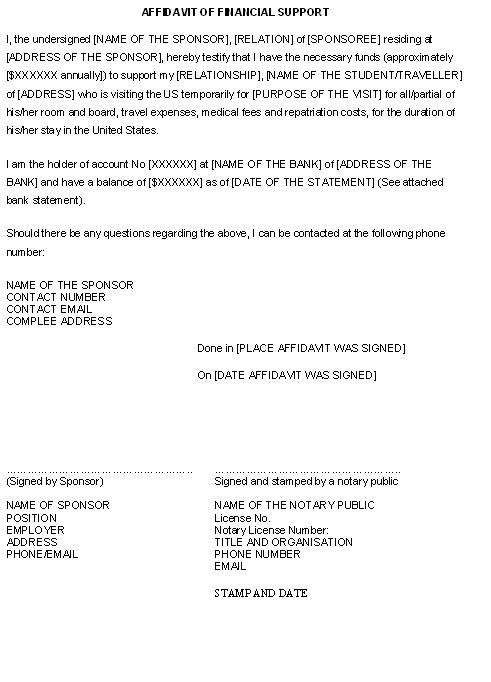 - Financial Ability: Documents such as pay stubs of you and/or your spouse, Affidavit of financial support (Form I-134) from the spouse in the US, evaluation of land-building, bank statement along with last 3 to 6 months of regular transaction in your name or any of your family members (supported by a notarized affidavit of support for sponsorship - see figure), etc. The more the better.