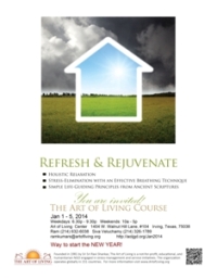 Art of Living course, Jan 01 - Jan 05 @ Art of Living Center, Irving Register Here