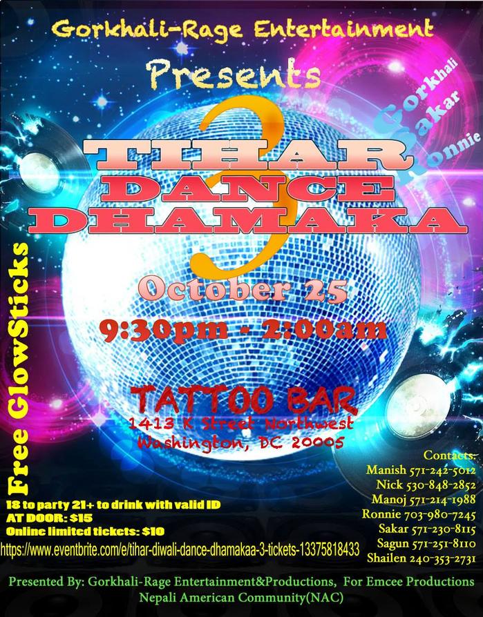 ONLINE TICKET LINK: https://www.eventbrite.com/e/tihar-diwali-dance-dhamakaa-3-tickets-13375818433
