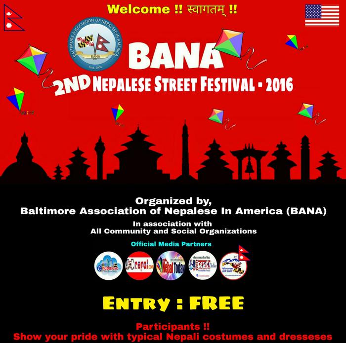 मेरिल्याण्ड राज्यमा रहेका विभिन्न सामाजिक संघसंस्थाहरुको साथ र सहकार्यमा "दोश्रो खुल्ला सडक महोत्सव - 2016" भब्य हुने भएको छ। महोत्सवलाई भब्य बनाउनका लागि यहाँ रहेका स्थानीय विभिन्न संघ संस्थाहरु म्याग्दी समाज अमेरिका, बाग्लुङ समाज अमेरिका, चितवन समाज अमेरिका, Nepal Education and Cultural Center, TEC Group, कास्की समाज अमेरिका, नेवा अर्गनाइजेसन अफ् अमेरिका, पासा: पुच अमेरिकाये्, पर्वत समाज, बाल्टिमोर आमा समुह, तमु समाज अमेरिका, गुरुङ समाज अमेरिका, नासो कम्युनिटी अमेरिका, तनहुँ समाज अमेरिका, एभरेष्ट ब्याण्ड मेरिल्याण्ड, मगर समाज अमेरिका, एभरेष्ट वर्ड क्लास तेक्वान्दो, एभरेष्ट इन्टर्टेन्ट्मेन्ट लगायतले सहकार्य गरेका छन भने NRN -USA र NRN - USA Maryland Chapter ले सहयोग गर्ने भएका छन। कार्यक्रमको सम्पुर्ण तस्वीर तथा भिडियोको छायांकनको जिम्मेवारी Cmos Creation का साथीभाईहरुले गर्ने भएका छन भने "मेरिल्याण्डका हामी नेपाली" ले पनि यस महोत्सवको भब्य सफलताका लागि सम्पुर्ण मेरिल्याण्डवासीहरुका तर्फबाट कलाकार तथा खेलाडीहरु जुटाउने तथा प्रचारप्रसार लगायतमा "विशेष सहयोगी" भुमिका निभाईरहेको हामी सबैमा सहर्ष जानकारी गराउँदछौं।