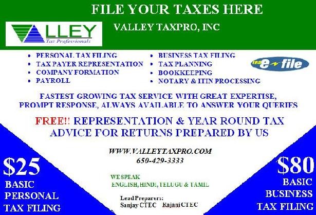 you can take appointment on www.valleytaxpro.com or call 408-866-8814 for appointment.
